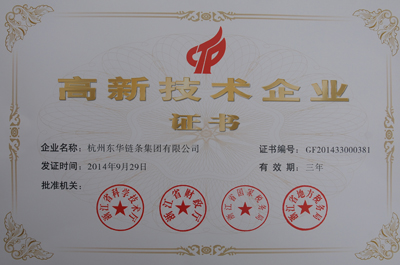 東華集團與下屬自強公司于2011年9月分兩批先后通過審核,獲得由浙江省科學技術廳、浙江省財政廳等聯合頒發的國家級“高新技術企業”認定證書。三年中,東華集團和自強公司在建設國家級高新技術企業的實踐中,一直在研發管理、人才引進、自主創新和高新技術成果轉化上下功夫,取得了較好成效。