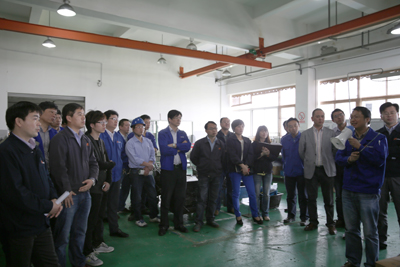 4月30日,集團公司副總經理袁立華、各事業部部長、副部長、日本專家早川先生、TPS專員及相關人員走進各事業部生產車間,現場聽取各事業部第六期TPS成果匯報,并現場檢驗、交流、學習各事業部在實施TPS上好的做法、成功經驗、取得的成效和存在的不足及改進措施。