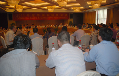 本次會議由銷售公司張秉忠主持,會議就東華集團發展現況、發展趨勢、管理與生產、全球銷售戰略、定位、品牌建設、全球制造、全球統一價格、市場協調及目前面臨的問題等方面進行了深入的分析與探討,在多方面達成共識。