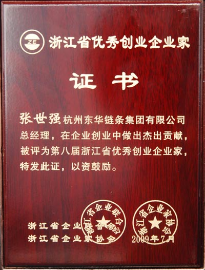 10月29日,在省人民大會(huì)堂召開(kāi)的“2009浙江省企業(yè)家活動(dòng)日”上,集團(tuán)總經(jīng)理張世強(qiáng)被授予“第八屆浙江省優(yōu)秀創(chuàng)業(yè)企業(yè)家”榮譽(yù)稱號(hào)。