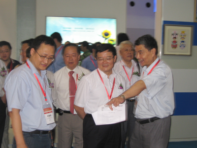 寶鋼集團董事長徐樂江、中國金屬學(xué)會常務(wù)副理事長洪及鄙到東華展臺參觀