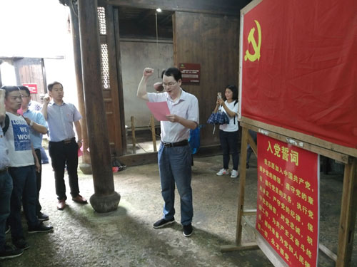 在被服廠舊址黨團宣誓室,全體黨員在黨委書記魯小林的帶領下進行入黨宣誓,重溫入黨誓詞,激發前行動力。