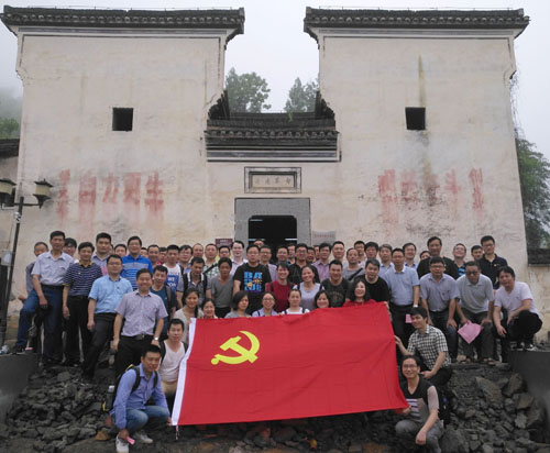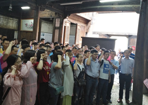 全體黨員在新四軍蘇浙軍區第一縱隊隨軍被服廠舊址合影。