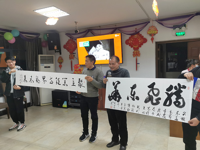 晚餐期間,通訊員現(xiàn)場(chǎng)進(jìn)行了書法創(chuàng)作、詩歌朗誦、笛子獨(dú)奏、獨(dú)唱合唱等文藝表演,展示了通訊員多才多藝的一面。