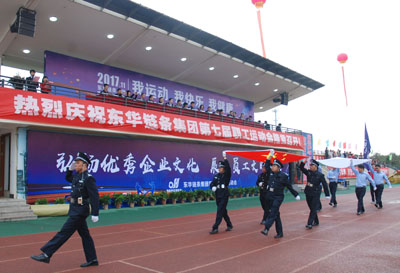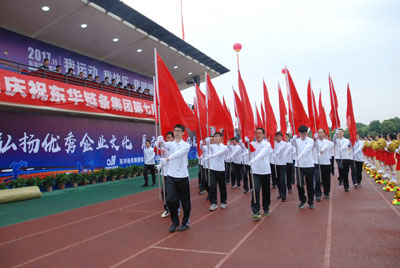 集團副董事長宣成致開幕辭。他說,在東華集團成立26周年之際,我們迎來了期待已久的第七屆職工運動會。回顧東華集團26周年的發展歷程,在宣董事長的領導下,企業獲得了長足的發展,取得了可喜的成績。本屆運動的隆重舉辦,既是對我公司體育工作、體育水平和員工精神風貌的再一次檢閱,也是對廣大職工身體素質、競技水平、心理承受能力等綜合素質的考驗,它必將進一步推動我們公司體育運動的深入開展。希望全體運動員發揚更快、更高、更強的奧運精神,秉承誠信、務實、創新,求更好的企業精神,積極進取,頑強拼搏,賽出競技水平,賽出道德風尚,賽出個性風采,賽出團結友愛,創紀錄、上層次、出新人。副董事長最后說,預祝全體運動員取得優異成績,預祝本屆職工運動會取得圓滿成功。