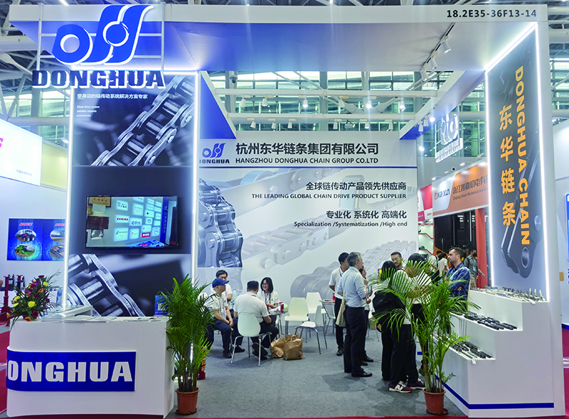 東華鏈條展廳位于展館的D區(qū),由國際市場部、盾牌公司等聯(lián)合參展,展品有各種高端滾子鏈、輸送鏈等150余件。展會期間不斷有世界各地的新客戶來到展廳參觀詢問,近至亞洲,遠(yuǎn)至南美和歐洲,他們詢問了解公司信息,交換名片和遞送公司宣傳冊,也有合作多年的老客戶、老朋友到東華展廳參觀交流。參展團隊向客人介紹企業(yè)的發(fā)展情況以及新產(chǎn)品、新技術(shù)等信息,雙方積極尋求新的合作方向。
