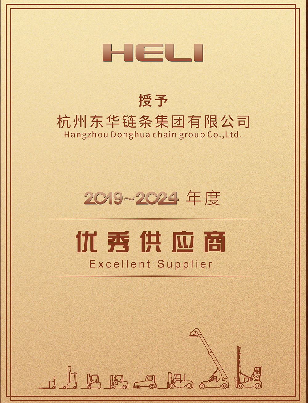 東華榮獲安徽合力“2019-2024年度優(yōu)秀供應商”稱號