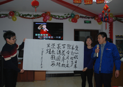 會議期間,還組織通訊員進行了才藝表演評比,節目大多是通訊員自己創作的相聲、朗誦、書法、歌舞等,充分展示了通訊員多才多藝的一面。經過大家多姿多彩的表演,最終,方健的吉它伴唱《同桌的你》獲一等獎;谷明沖、付冰的相聲《傳動鏈那些事》獲二等獎;何中華的書法《最愛東華報》和王曉霞、劉榮軍的歌伴舞《紅梅贊》獲三等獎。