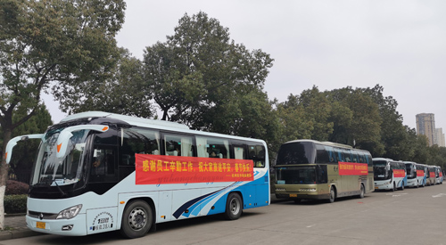 119日中午12點整,6輛開往河南省、湖南省、江西省、安徽省等共18個站點的公司包車有序出發,送154名員工回家過春節,這也是公司第10個年頭包車送員工返鄉過春節,溫暖了員工的回家路,讓員工真真切切地感受到了企業發展帶來的福利。