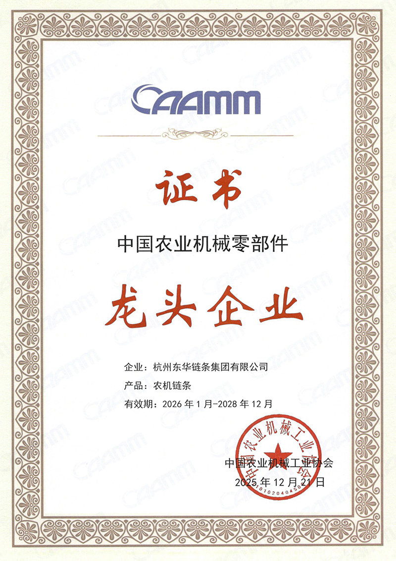 中國農(nóng)業(yè)機(jī)械零部件龍頭企業(yè)是國內(nèi)農(nóng)機(jī)零部件領(lǐng)域極具權(quán)威性的行業(yè)榮譽(yù)。東華鏈條自2016年以來,已連續(xù)多年獲此殊榮,彰顯了企業(yè)在農(nóng)機(jī)傳動(dòng)領(lǐng)域的持續(xù)領(lǐng)先地位。