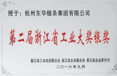 會上隆重表彰了8家2016年浙江省第二屆工業大獎金獎單位和9家銀獎單位,東華鏈條集團榮獲“浙江省工業大獎銀獎”稱號,同時躋身“2016年浙江省制造業百強”第87位和“2016年浙江省成長性最快百強企業”第58位。東華鏈條集團生產的“分動箱無聲鏈條”和“帶油杯梯級鏈條”榮登2016年浙江省優秀工業產品榜單。由東華鏈條集團報送的“適應新生代應屆生特點的入職培養”榮獲2016年浙江省企業管理現代化創新成果二等獎。以上獎項由企業申報,專家組現場考評后,經過相關部門領導及專家組進行初選、評審、決選和社會公示等程序產生。