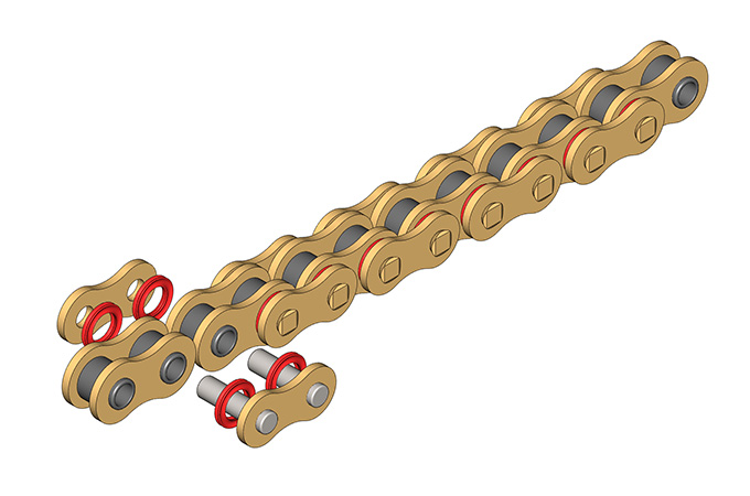 ● 摩托車密封圈鏈條采用優(yōu)質(zhì)的材料和潤滑油脂、先進的加工工藝,產(chǎn)品具有高疲勞強度、高抗磨損性能等特點,以滿足不同排量、不同用途的摩托車使用需求,廣泛應(yīng)用于各類摩托車賽事以及公路使用摩托車。