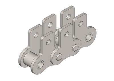 ● 輸送用滾子鏈的附件根據(jù)使用要求設(shè)計(jì)不同的結(jié)構(gòu)形式,具有廣泛性、多樣性等特點(diǎn),其中水平壓彎附板、帶孔直立附板、加長銷軸等附件應(yīng)用較為廣泛。