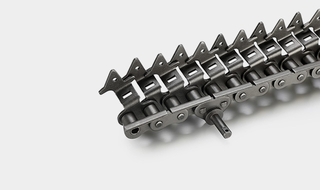 ● 印鐵烘房線鏈條是在標(biāo)準(zhǔn)短節(jié)距精密滾子鏈作為基鏈的基礎(chǔ)上加裝特殊附件的鏈條;典型產(chǎn)品結(jié)構(gòu)為一側(cè)通過安裝內(nèi)、外支撐片來保持鏈條直線度,另一側(cè)通過內(nèi)外附板安裝花架運輸物品。